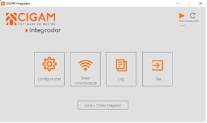 Na tela inicial do CGIntegrador.exe, quando a integração estiver ativa a opção Configurações fica desabilitada o play na parte superior da tela fica em cinza e é exibido logo a baixo do play o texto 'próxima execução e o tempo que se iniciará o novo processamento.