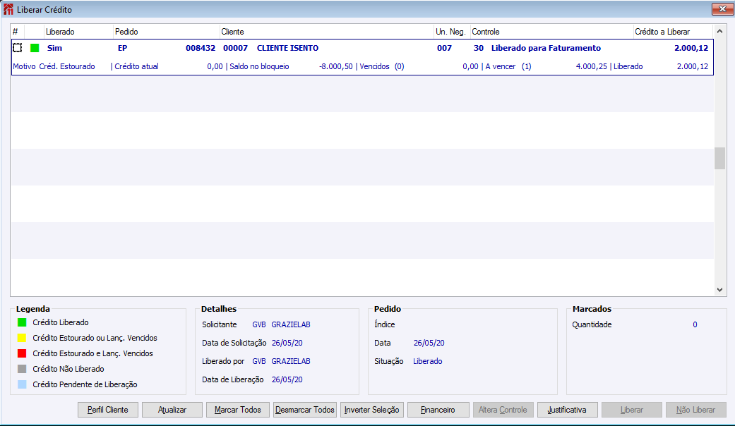 Liberação de Crédito na Efetivação de Pedidos 10