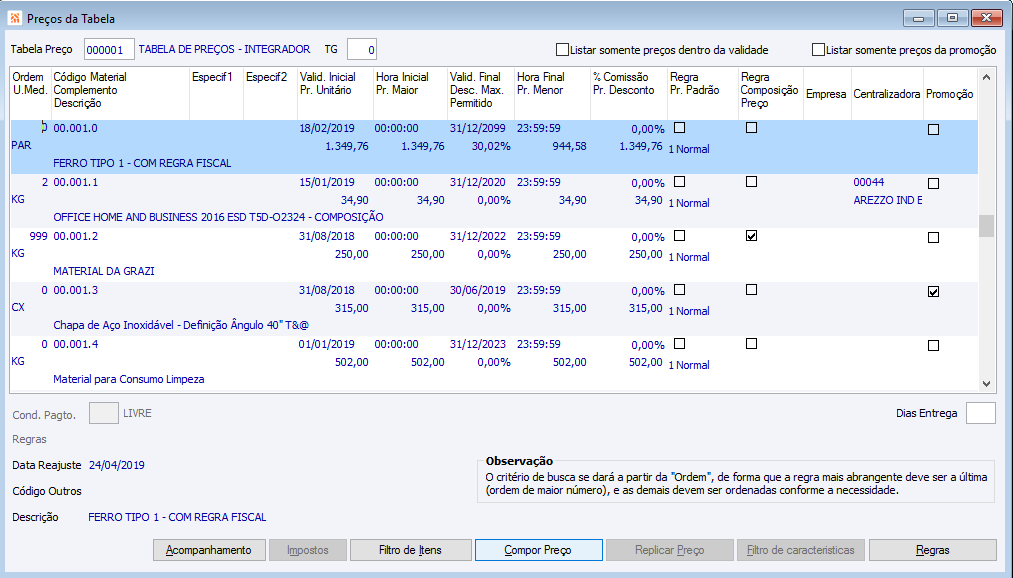 Tabela de Preço 2