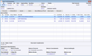 A nota fiscal será efetivada com Total da Nota e Total Faturado não considerando o valor do Brinde. Nos itens da NF o material de Brinde estará informado. Este registro deverá ser realizado para que ocorra a baixa correta do estoque do produto: