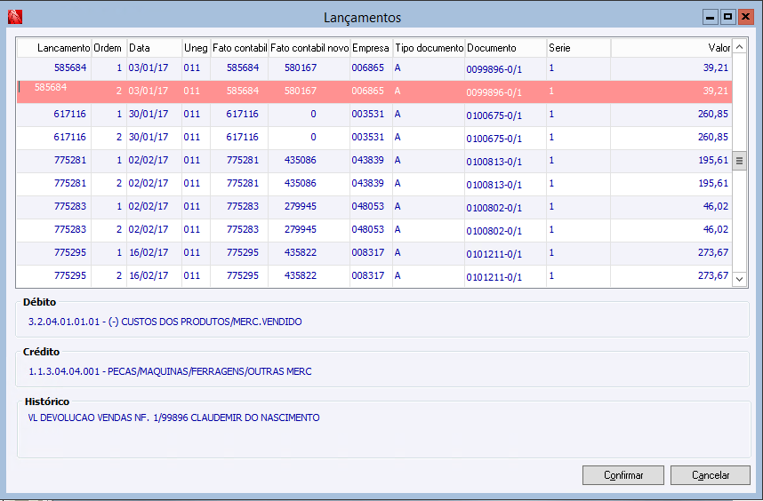 Histórico do arquivo