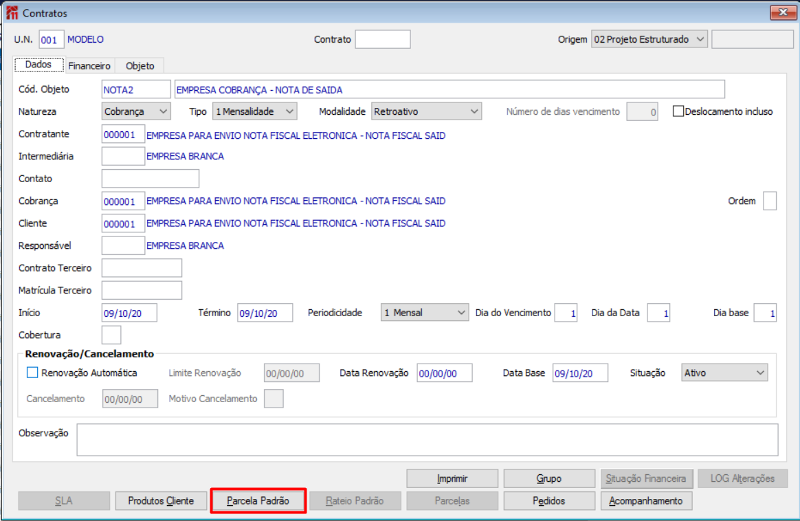 Acessando Parcela Padrão