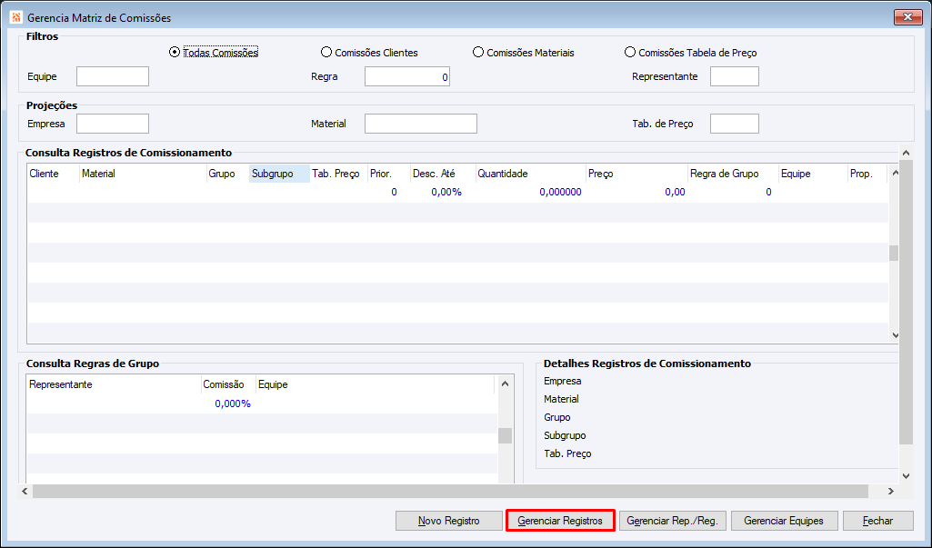 Botão Gerenciar Registros