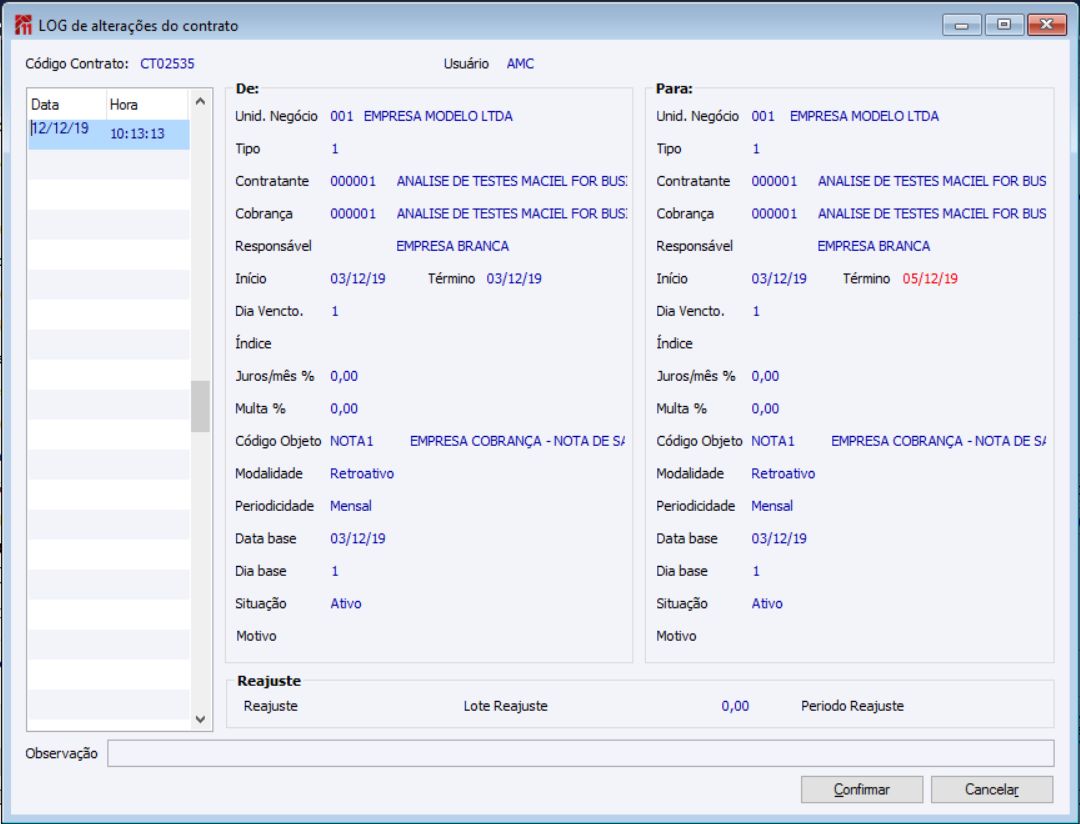 Histórico do arquivo