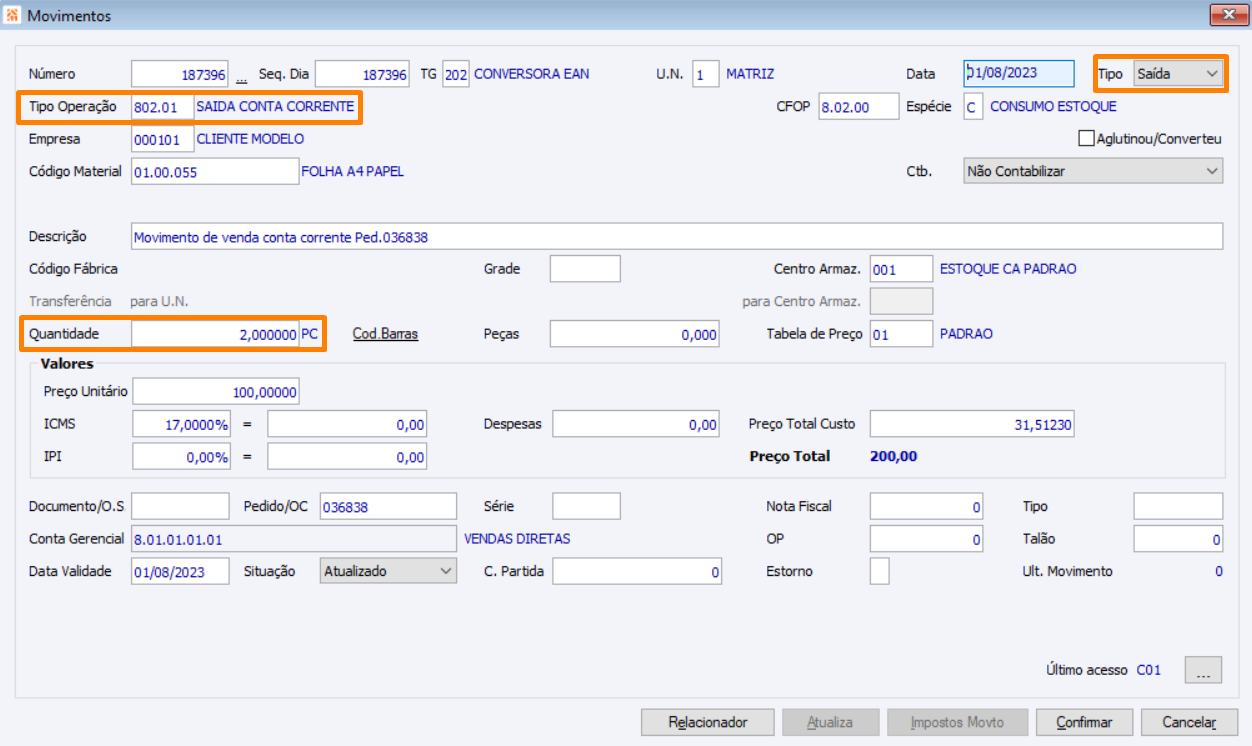 Uso do arquivo