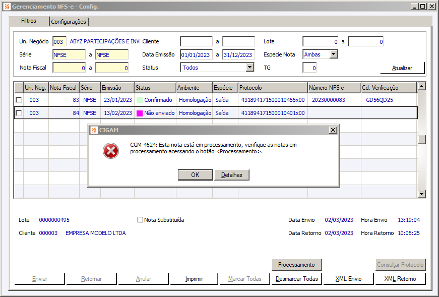Histórico do arquivo