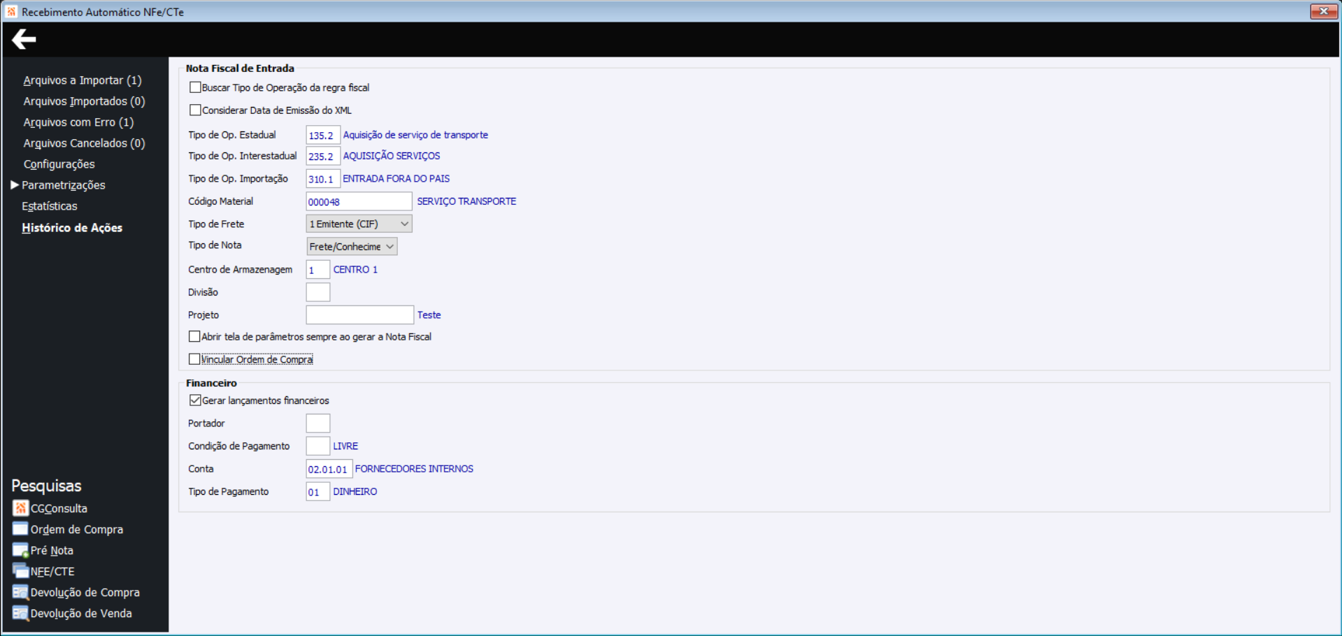 Uso do arquivo