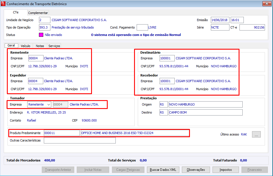 Conhecimento de Transporte Eletrônico 11