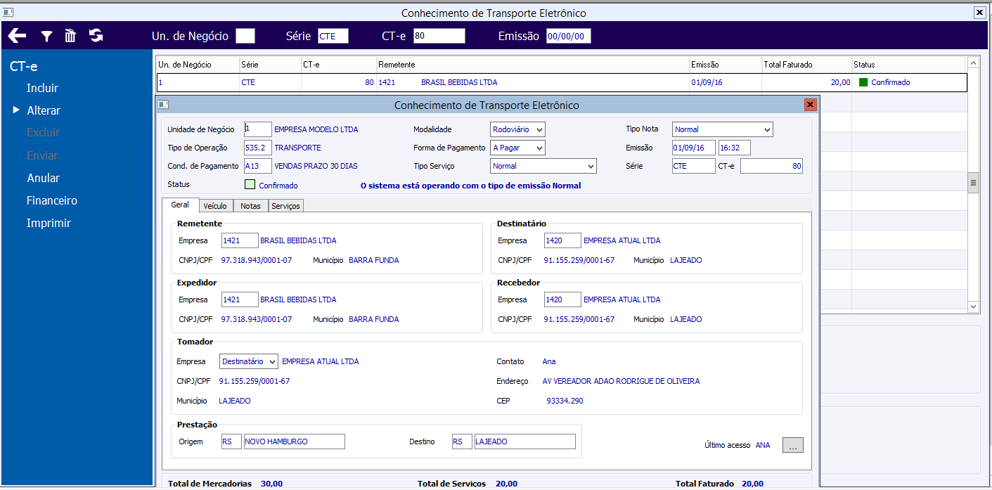 Conhecimento de Transporte Eletrônico 16