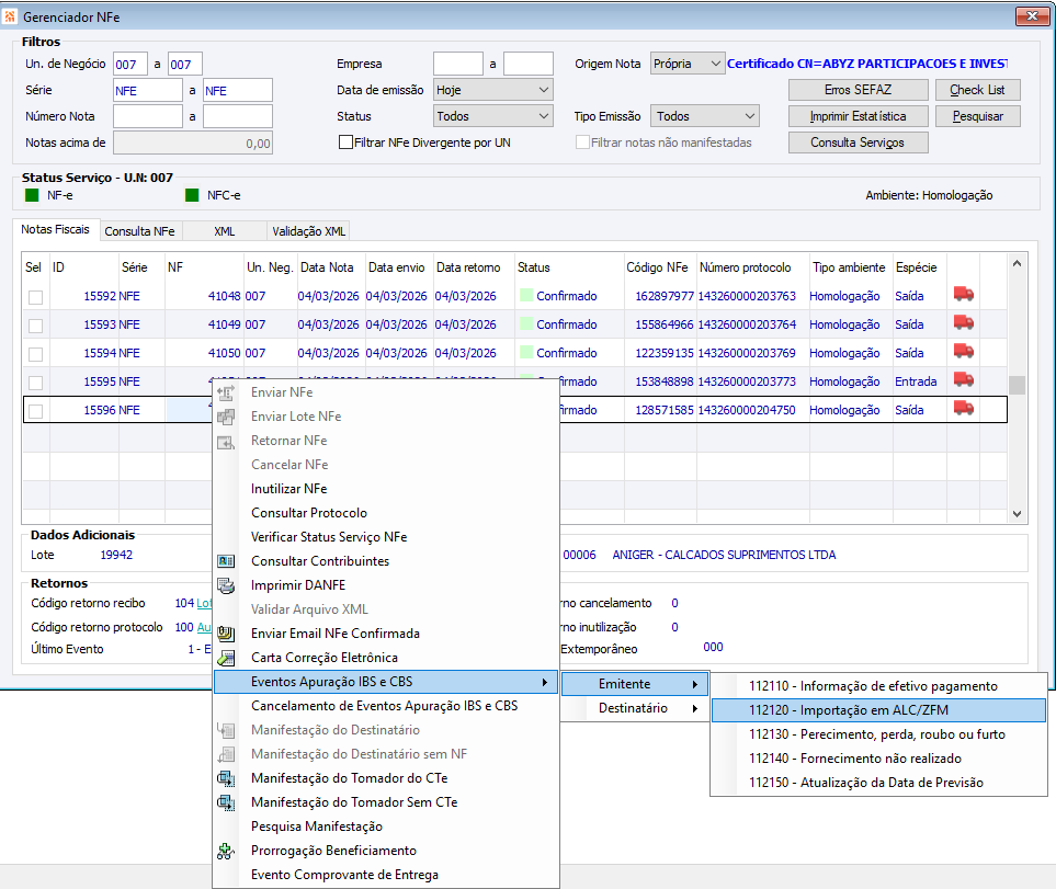 Eventos Apuração IBS e CBS 10