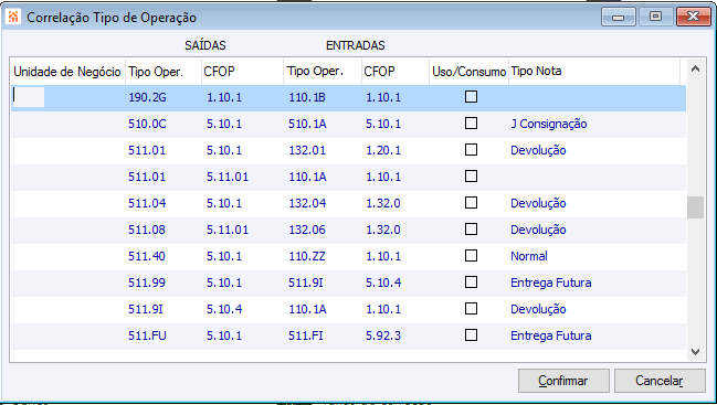 Faturamento Parâmetros 14