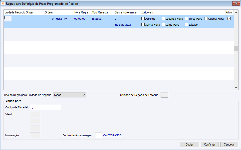 Faturamento Parâmetros 25