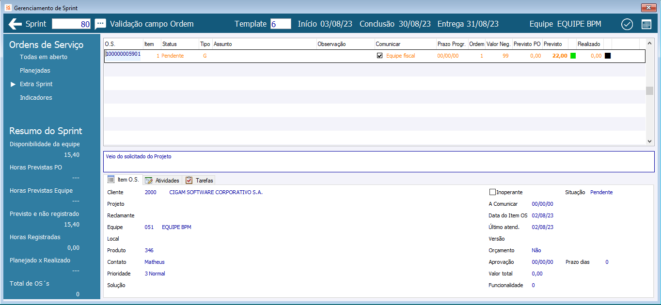 gerenciamento de sprint filtro extra sprint