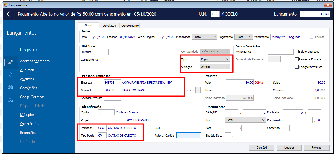 Uso do arquivo