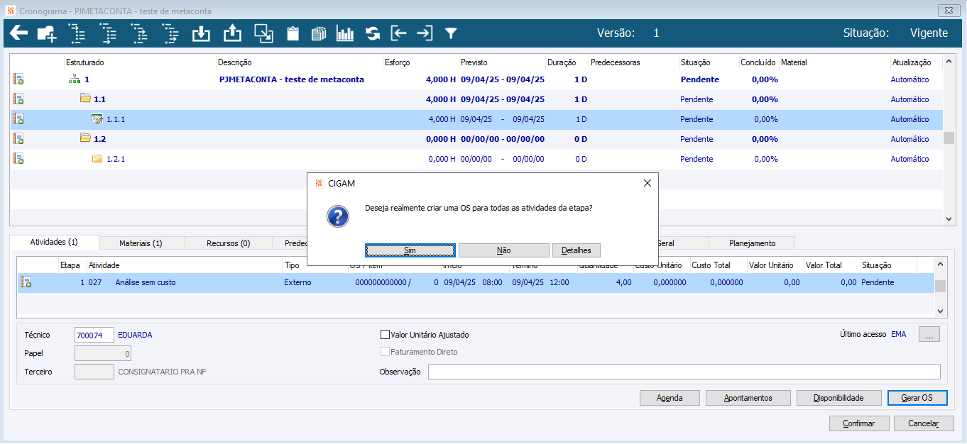 criação de Ordem de Servico no projeto