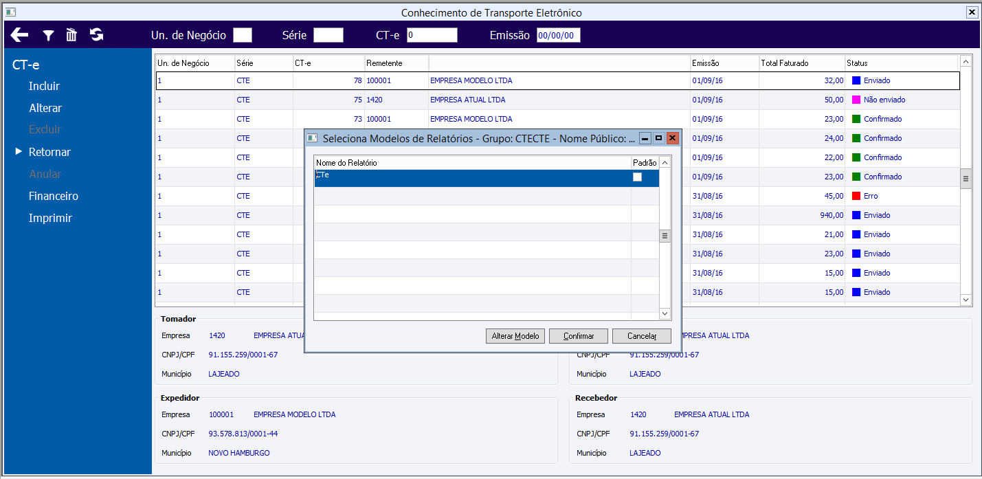 Impressão do CTe