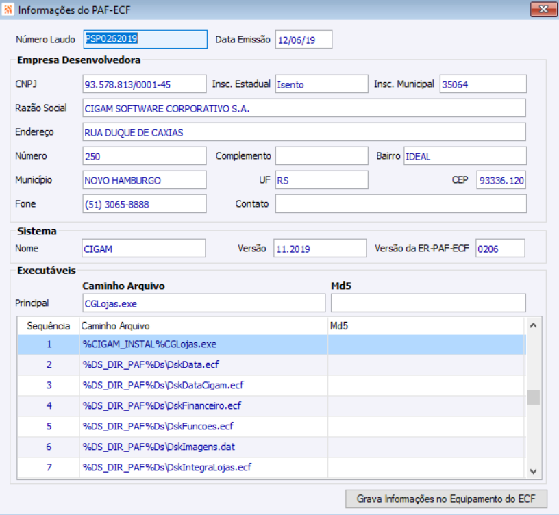 Informações PAF