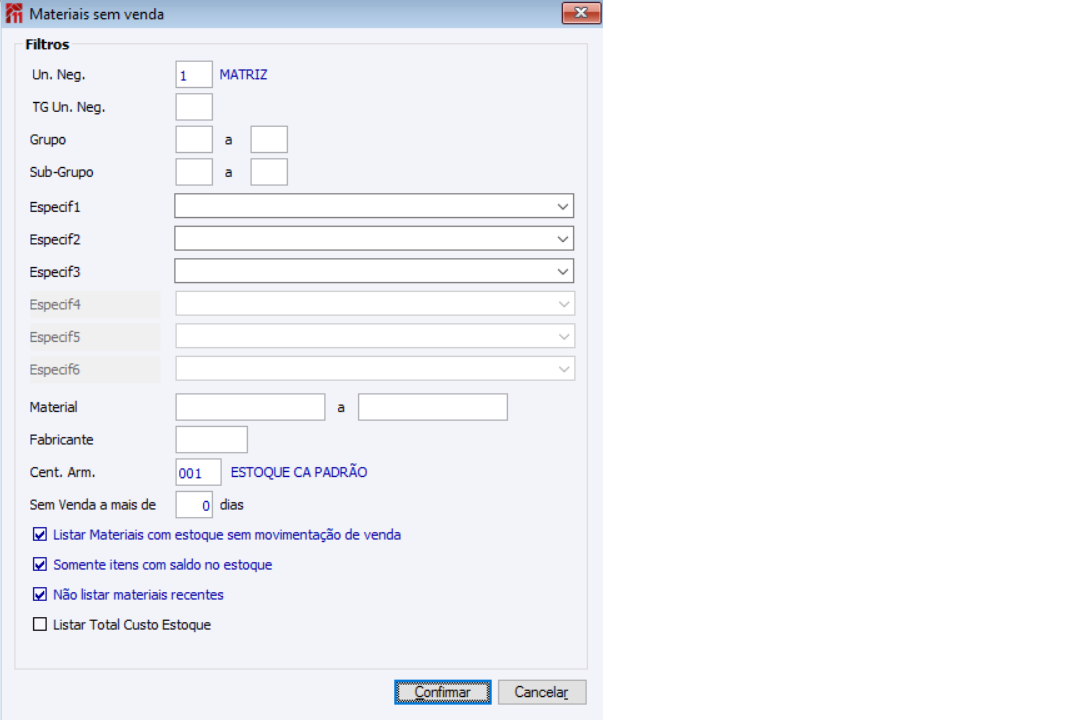 Materiais sem Venda Filtros