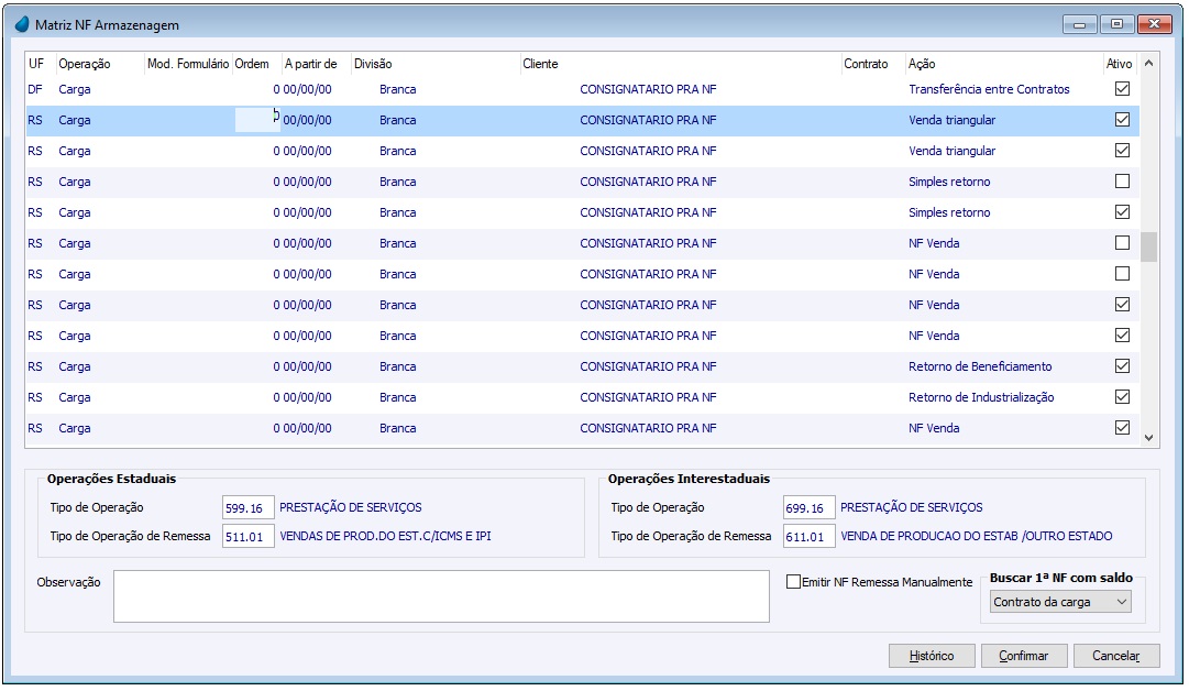 Matriz NF Armazenagem