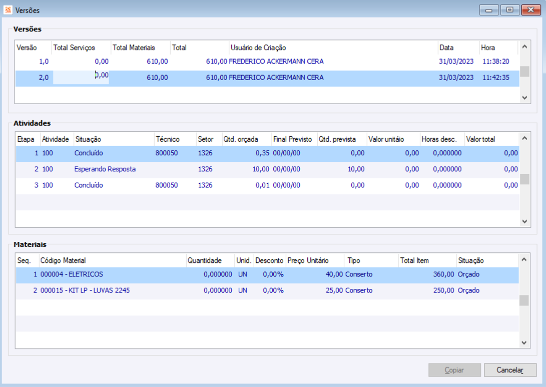 Histórico do arquivo
