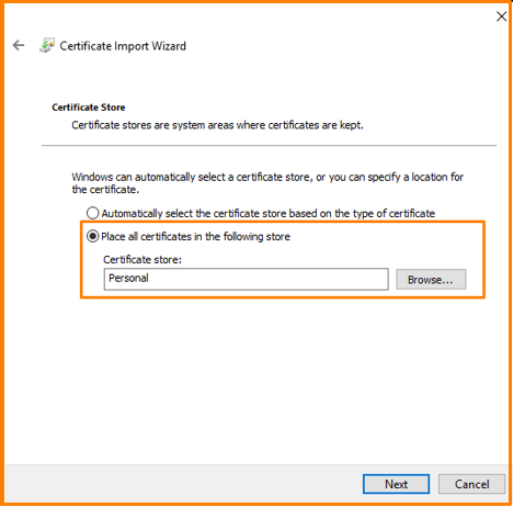 Personal Certificate Import Wizard