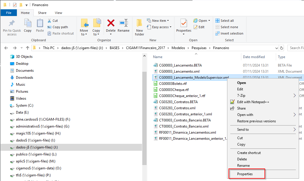 Histórico do arquivo