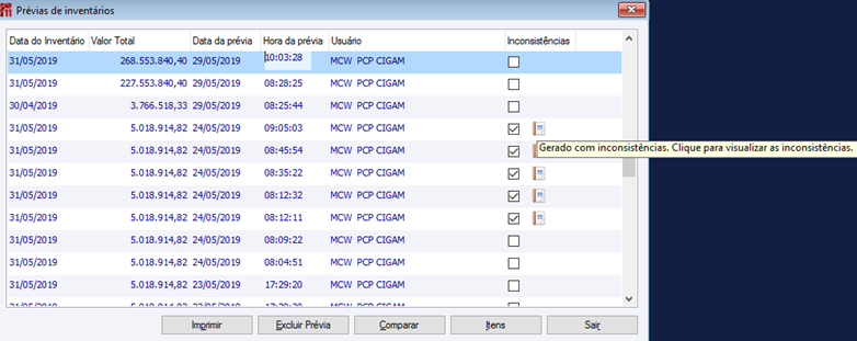 Histórico do arquivo