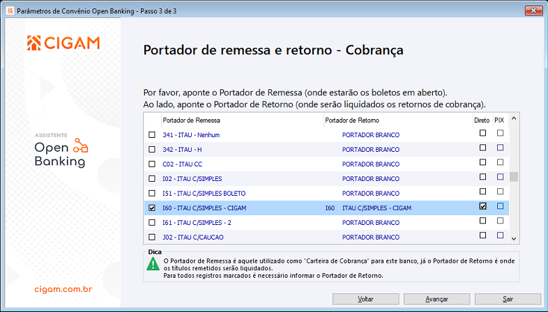 Portador de Remessa e Retorno Itau Cobranca