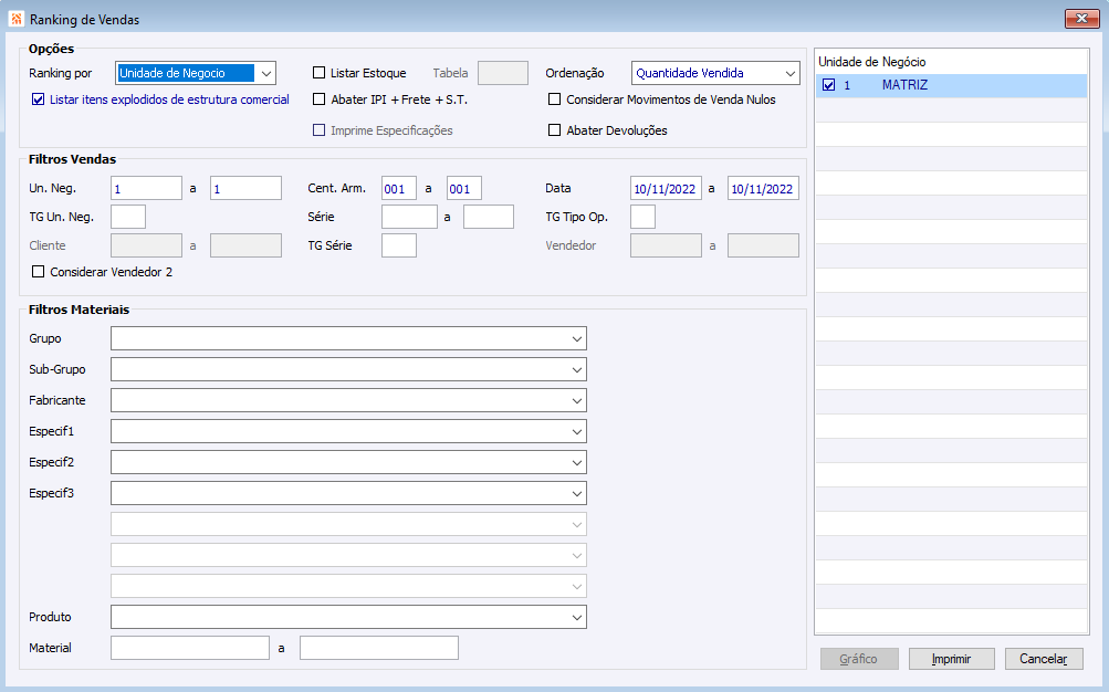 Ranking Vendas Filtros