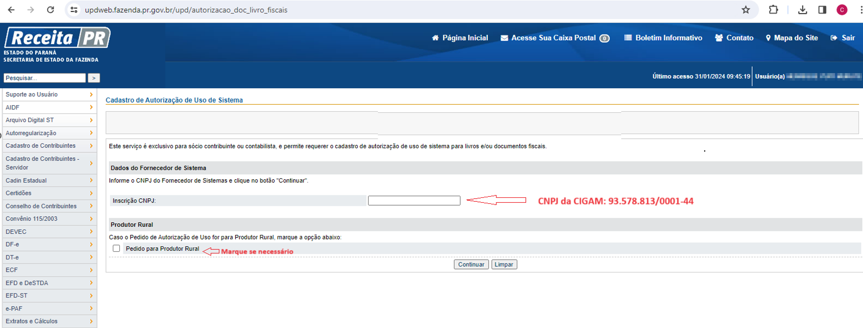 Uso do arquivo