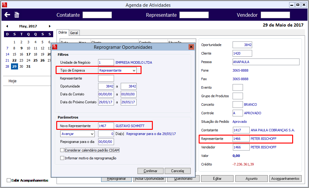 Reprogramação de Oportunidade 85