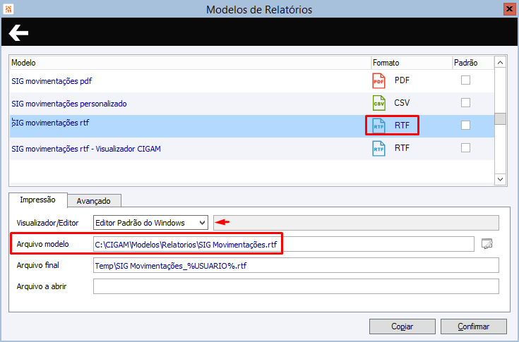 Uso do arquivo