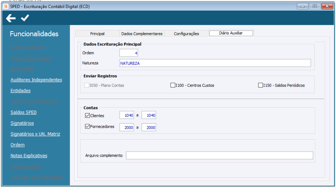 SPED Escrituracao Contabil Digital Aba Diario Auxiliar