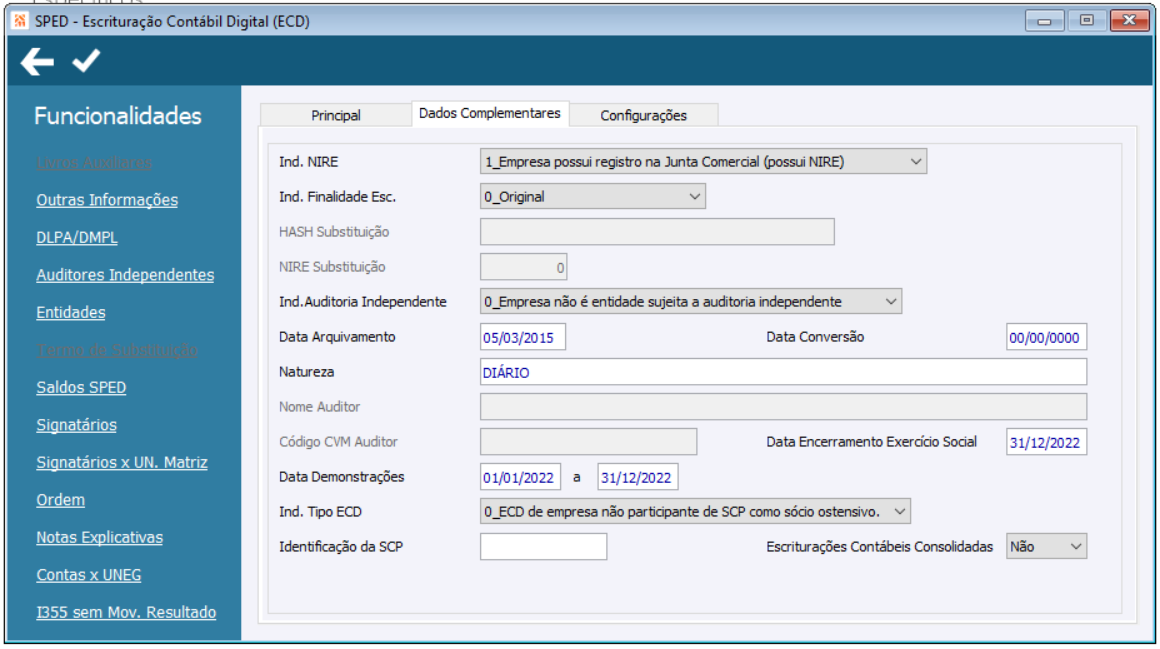 SPED Escrituracao Contabil Digital Complementares