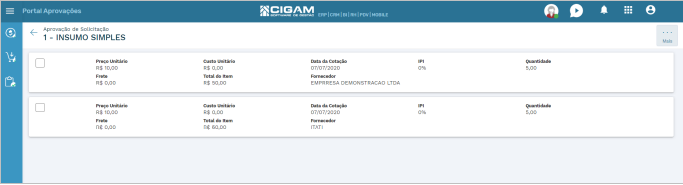 Cotações para o item