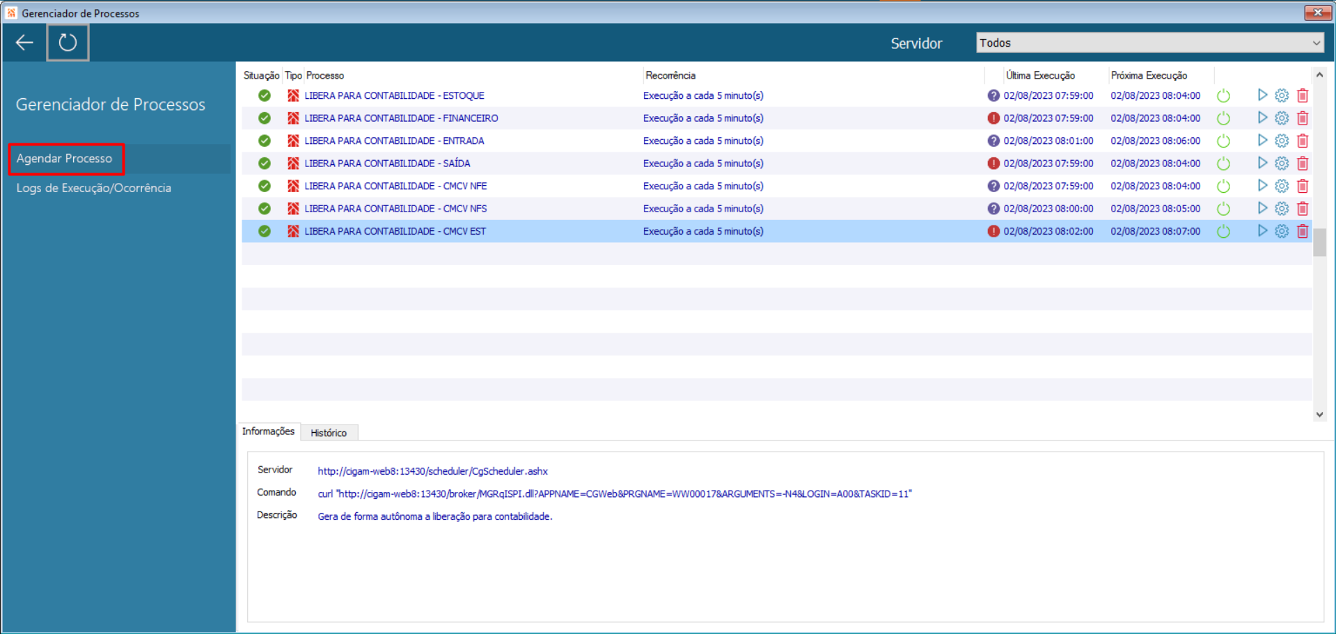 Tela Gerenciador de Processos