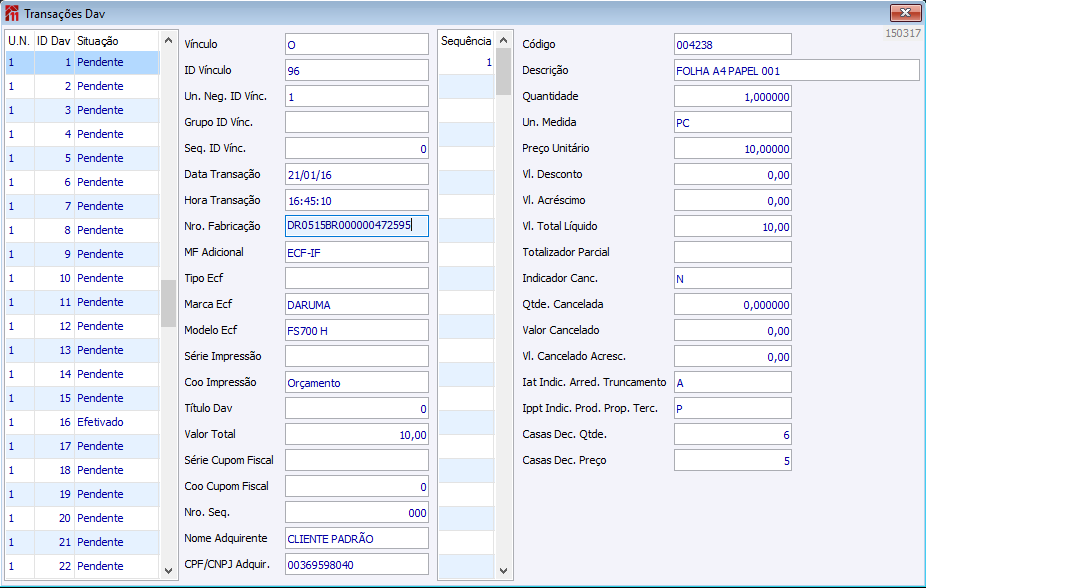 Transações DAV
