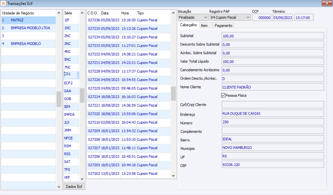 Transações ECF