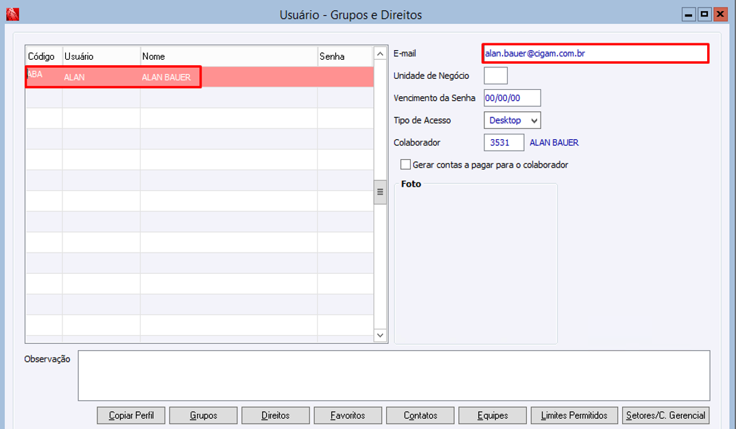 Uso do arquivo