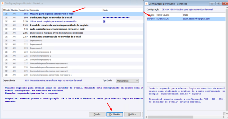 - Configuração GE - AM - 903 - Usuário para login no servidor de e-mail: Deve ser o mesmo e-mail cadastrado para o usuário, validado anteriormente.